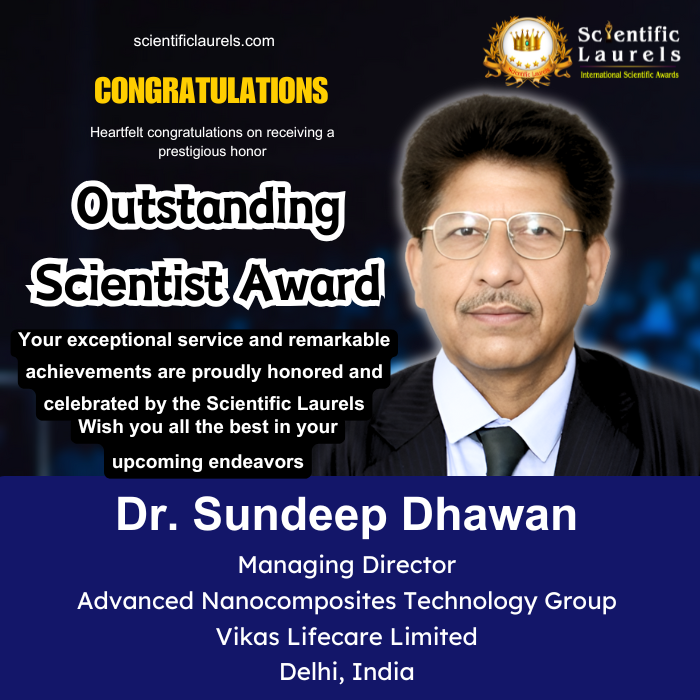 Dr. Sundeep Dhawan is a distinguished scientist, innovator, and industry leader, currently serving as the Managing Director of Vikas Lifecare Limited, New Delhi. With decades of experience at the intersection of scientific research, industrial innovation, and technology commercialization, he has made significant contributions to applied sciences and sustainable industrial development. His leadership reflects a rare blend of academic excellence and entrepreneurial vision, enabling the successful translation of research into impactful industrial solutions.