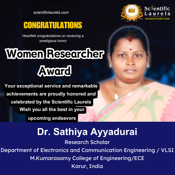 With her strong research profile, academic leadership, significant publication record, and consistent contribution to faculty and student development, Dr. Sathiya Ayyadurai is highly eligible for the Women Researcher Award at Scientific Laurels. Her achievements reflect excellence in research, commitment to academic growth, and impactful leadership as a woman researcher in engineering education.