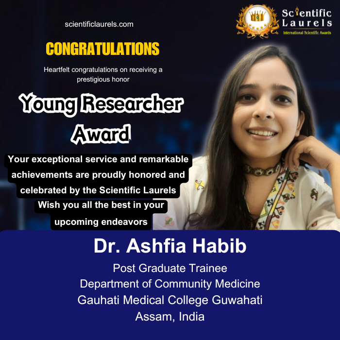 Dr. Ashfia Habib is currently pursuing an MD in Community Medicine at Gauhati Medical College and Hospital (2023–2026). She has developed a strong foundation in epidemiology and biostatistics and has focused her research on region-specific public health challenges in Assam. Her work bridges clinical, psychosocial, and health system factors, aiming to translate evidence into practical preventive and quality-improvement interventions.