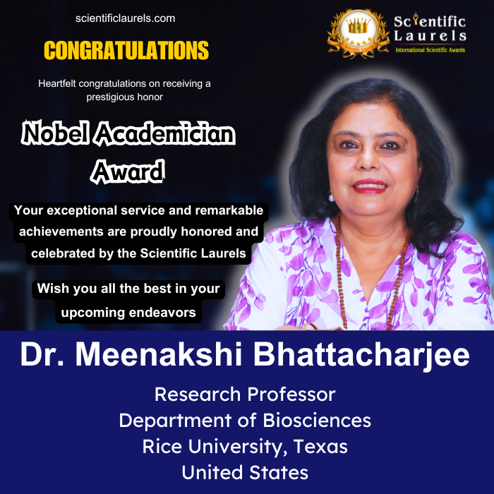 Prof. Dr. Meenakshi Bhattacharjee is eminently eligible for the Nobel Academician Award in Scientific Laurels due to her: