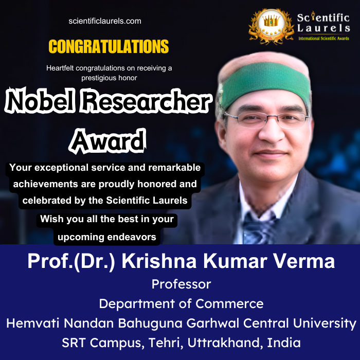Prof. Krishna Kumar Verma’s multifaceted contributions — as an author, educator, and thought leader — make him a distinguished candidate for the Nobel Research Award in Scientific Laurels.