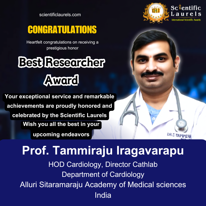 Prof. Tammiraju Iragavarapu is highly eligible for the Best Researcher Award in Scientific Laurels due to his sustained and impactful research output, international publications, global conference presentations, textbook authorship, and leadership in cardiovascular science. His work bridges clinical excellence, academic innovation, and translational research, making him a deserving candidate for recognition at national and international scientific platforms.