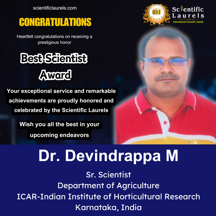 Dr. Devindrappa has published over 22 research papers, authored 5 book chapters, 3 training manuals, and 11 popular articles, in addition to 5 e-publications. He has actively contributed to national and international conferences, workshops, and training programs, sharing his expertise in nematology and sustainable crop protection.Awards & Recognition: