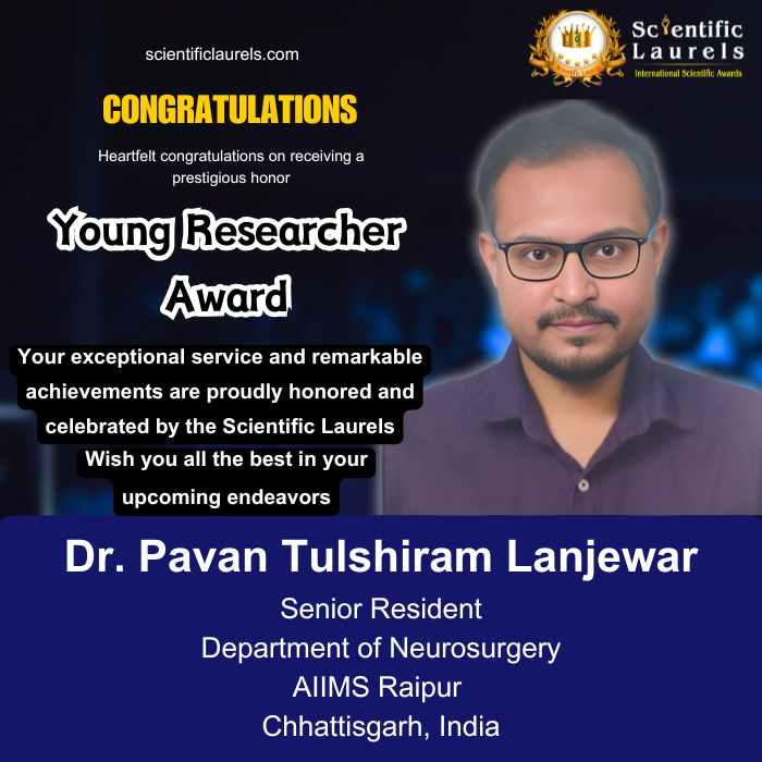 Dr. Pavan Tulshiram Lanjewar is a strong candidate for the Young Researcher Award in Scientific Laurels due to his impressive academic and research profile. With 8 publications, multiple presentations at reputed national conferences, and active involvement in neurosurgical research during his residency at AIIMS Raipur, he demonstrates significant potential in advancing medical science. His contributions to clinical research, particularly in trauma and neurosurgery, along with his commitment to academic excellence, make him well-qualified and deserving of this recognition.