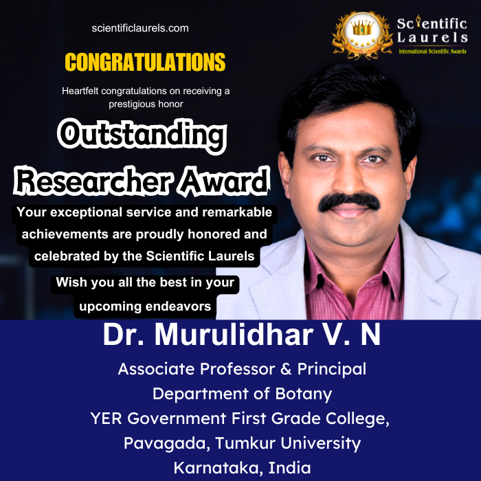 Dr. Murulidhar V. N is eminently eligible for the Outstanding Researcher Award under the Scientific Laurels category, supported by his: