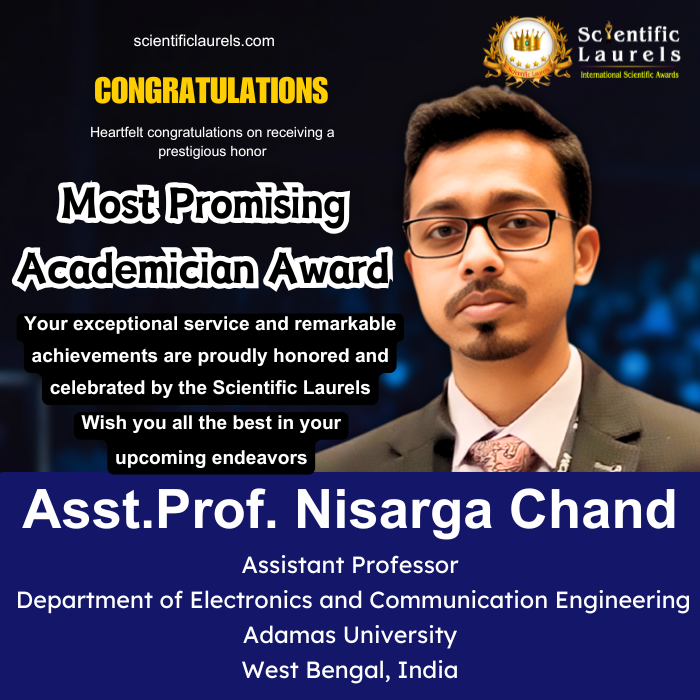 Asst. Prof. Nisarga Chand is strongly eligible for the Most Promising Academician Award under scientific laurels due to his: