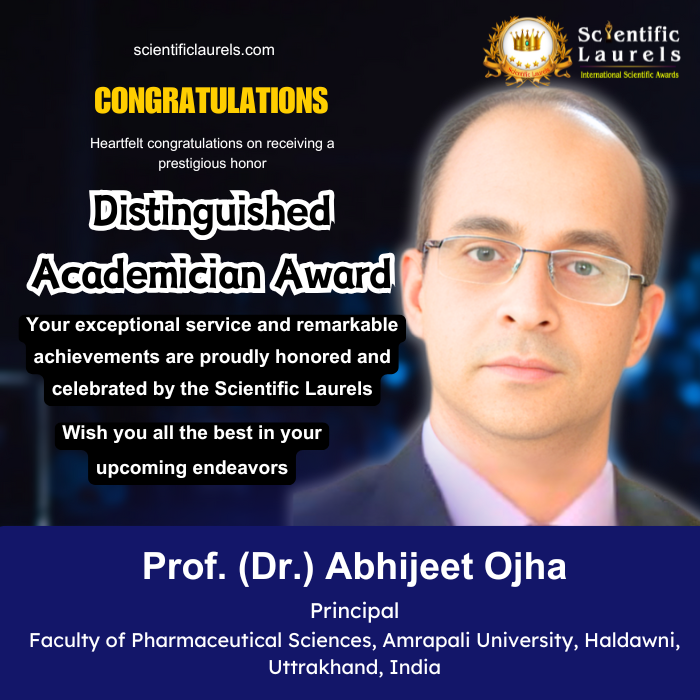 Prof. (Dr.) Abhijeet Ojha stands as an exemplary and deserving candidate for the “Distinguished Academician Award in Scientific Laurels.”