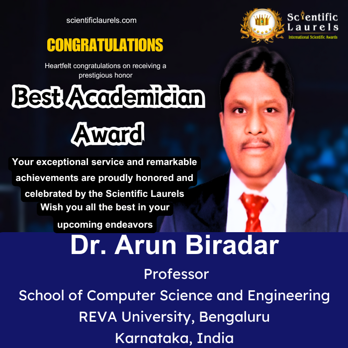 With his exceptional contributions in teaching, research, and academic leadership, Dr. Arun Biradar is highly eligible for the Best Academician Award in recognition of his outstanding scientific and educational achievements.