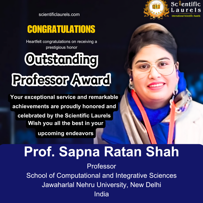 Prof. Sapna Ratan Shah is highly deserving of the Outstanding Professor Award in Scientific Laurels in recognition of her exceptional academic contributions, prolific research output, and exemplary leadership in the field of applied mathematics and biomedical modelling. With over nine years of distinguished service at the School of Computational & Integrative Sciences, JNU, she has established herself as a leading scholar whose work spans biomechanics, ocular hemodynamics, nanoparticle drug delivery, leukemia modelling, and physiological simulations. Her impressive portfolio includes 154 research papers, multiple national and international research projects funded by UGC, DST, ICMR, ICSSR, and JNU, as well as eight books and several book chapters published with notable publishers such as Elsevier, CRC Press, and Springer. Prof. Shah’s scientific excellence is further recognized through prestigious national and global awards, including the Global Lifetime Achievement Award (2024). Her sustained contributions to research, teaching, mentorship, and the advancement of interdisciplinary science strongly affirm her eligibility for this distinguished honor.