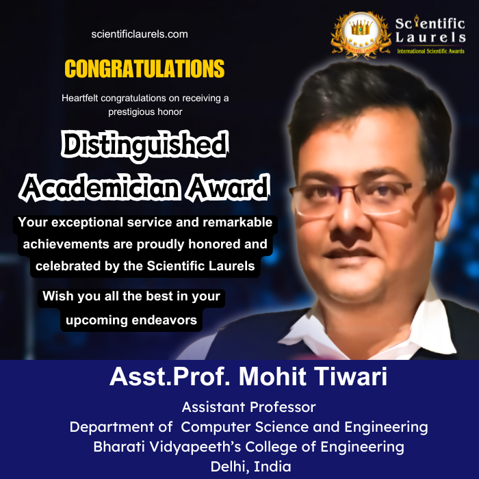 Asst. Prof. Mohit Tiwari’s distinguished career in research, innovation, and education, along with his contributions to patents, international publications, and authorship of multiple books, makes him a highly eligible candidate for the Distinguished Academician Award in Scientific Laurels. His work demonstrates a sustained commitment to advancing scientific knowledge and fostering innovation in both academia and industry.