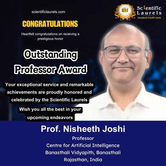 With a stellar academic record, impactful research in AI and NLP, substantial national-level funded projects, global academic recognition, and dedication to educational innovation, Prof. Nisheeth Joshi is a highly deserving candidate for the Outstanding Professor Award under the Scientific Laurels initiative. His work not only advances academic excellence but also contributes significantly to the technological and linguistic development of India.