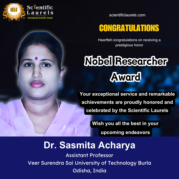 Given her exemplary academic and research contributions, Dr. Sasmita Acharya stands as a strong candidate for the Nobel Researcher Award in the Scientific Laurels. Her dedicated work in the fields of computational intelligence, sensor networks, and alternative energy, coupled with her extensive teaching experience, positions her as a leading figure in the scientific community.