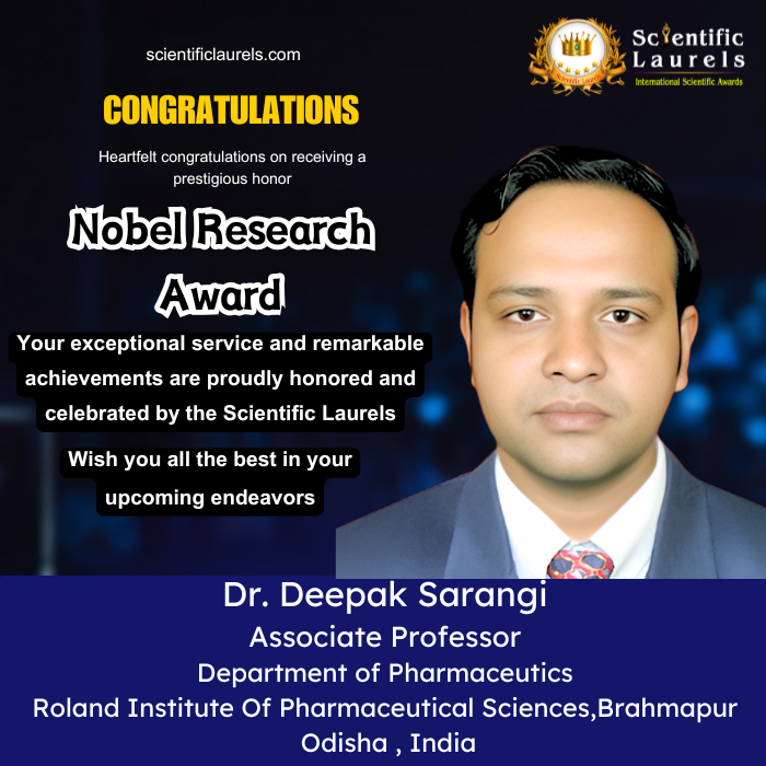 Given his consistent contributions, depth of research, and commitment to advancing pharmaceutical sciences, Dr. Deepak Sarangi is eminently eligible for the Nobel Research Award in recognition of his scientific laurels and outstanding achievements.