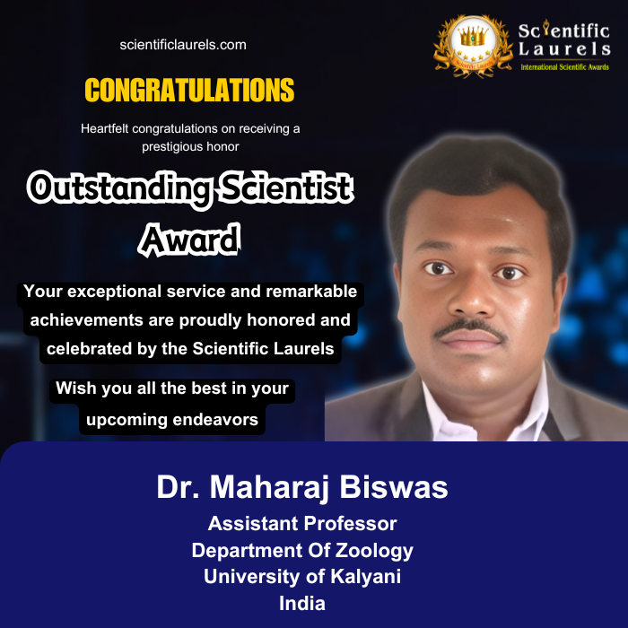 Dr. Maharaj Biswas’s distinguished record of internationally recognized research, impactful publications, authorship of a global academic book, excellence in teaching, and receipt of an international award strongly demonstrate his eligibility for the Outstanding Scientist Award in Scientific Laurels. His innovative research in endocrinology, cardiovascular and metabolic disorders, and reproductive toxicology stands as a significant contribution to both scientific knowledge and societal health benefits.