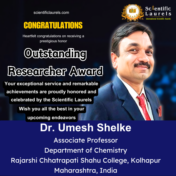 Dr. Umesh Suresh Shelke is a distinguished academician and researcher with a robust background in Chemistry and interdisciplinary scientific innovation. He holds a Ph.D. (2024) awarded by Sant Gadge Baba Amravati University, Amravati, and has consistently contributed to both teaching and research in the field of chemical sciences.