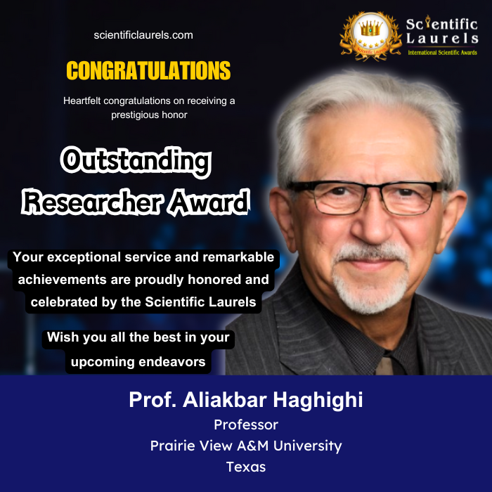 Given his outstanding research contributions, leadership in academia, and extensive scholarly activities, Prof. Aliakbar Montazer Haghighi is highly deserving of the Outstanding Researcher Award from Scientific Laurels.