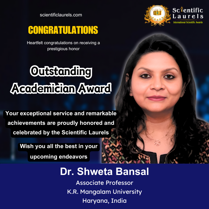 Dr. Shweta Bansal’s exceptional contributions to technical education, research, innovation, and academic leadership make her a deserving recipient of the Outstanding Academician Award in Scientific Laurels. Her impact on AI, Machine Learning, and Speech Processing has significantly influenced both academia and industry.