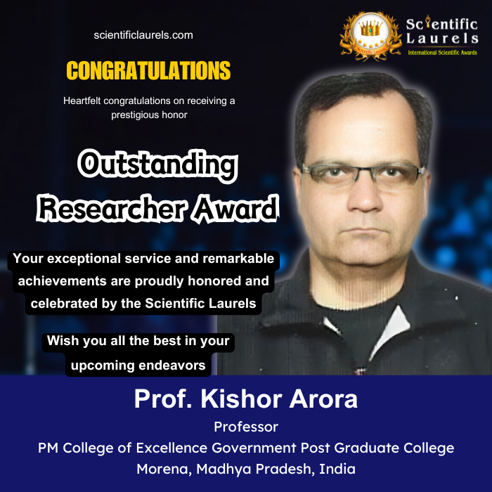 Prof. Kishor Arora’s decades-long, multi-faceted research career, prolific publication record, impactful mentorship, and consistent academic excellence make him eminently eligible for the Outstanding Researcher Award. His contributions have significantly advanced the frontiers of chemical sciences, especially in the domain of quantum chemical and kinetic studies, and exemplify the spirit of this prestigious recognition.
