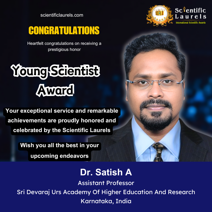 Given his extensive research contributions, numerous high-impact publications, and significant findings in the field of clinical nutrition, food science, and biochemistry, Dr. Satish A is highly eligible for the Young Scientist Award at Scientific Laurels. His pioneering work on Morus indica flavonoids and their therapeutic potential in diabetes management underscores his expertise and impact in the scientific community.