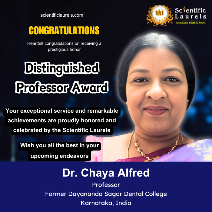 Dr. Chaya Alfred is a highly esteemed Professor and Head in Oral Medicine and Radiology with over 30 years of experience in academic leadership, patient care, and research. As a dedicated educator and clinician, she has mentored numerous students, guided 25 postgraduate theses and three PhD scholars, and contributed significantly to oral healthcare research.