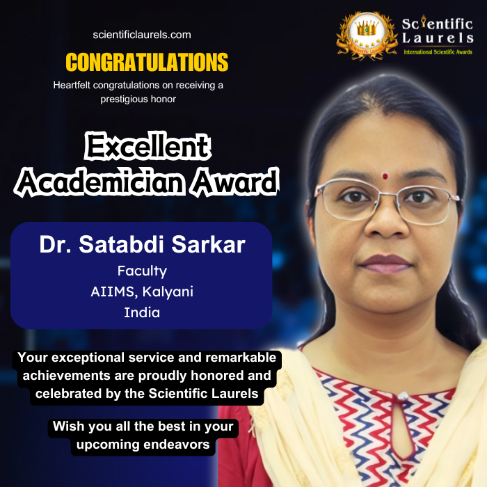 Dr. Satabdi Sarkar's extensive academic contributions and commitment to education and research make her eligible for the prestigious Excellent Academician Award by Scientific Laurels. Her dedication to advancing anatomical sciences and her influential role as an educator underscore her standing as an exceptional academician.