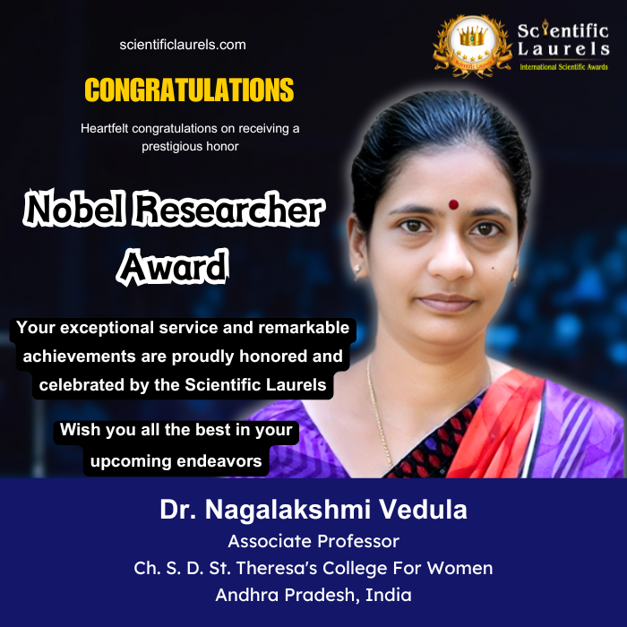 Given her extensive contributions to research, education, and scientific advancements, Dr. Nagalakshmi Vedula is highly deserving of the Nobel Researcher Award under Scientific Laurels. Her commitment to academia, innovation, and sustainability makes her a distinguished figure in the scientific community.