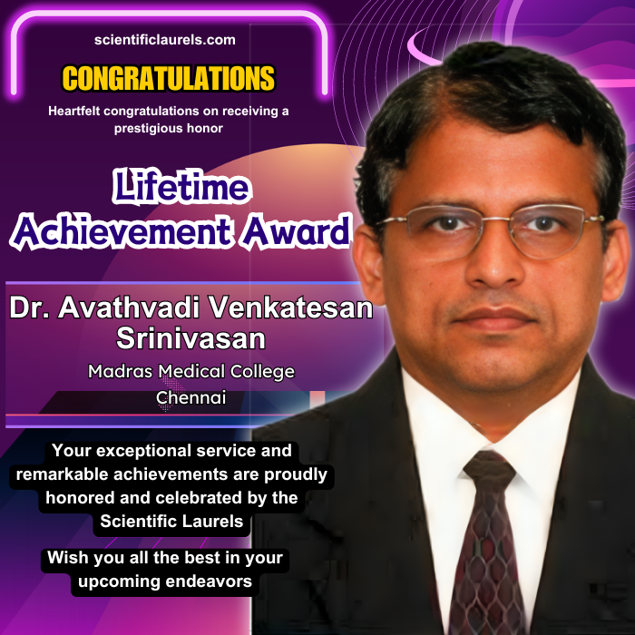 Academic Achievements: Dr. Srinivasan holds professional degrees and advanced medical degrees from prestigious institutions such as the Madras Medical College. He obtained an M.B.B.S., M.D. General Medicine, and D.M. Neurology from the Madras Medical College. Additionally, he received a Ph.D. from the Tamil Nadu Dr. MGR Medical University, becoming the university's first-ever Ph.D. recipient in Neurology. Dr. A. V. Srinivasan was awarded the Doctor of Scienc(Dsc) Honoris Causa by The Tamil Nadu Dr. M.G.R. Medical University in January 2011. This prestigious recognition highlights his significant contributions and achievements in the field of neurology. The honor is conferred as an honorary degree, recognizing his exceptional expertise, dedication, and service in the medical profession.