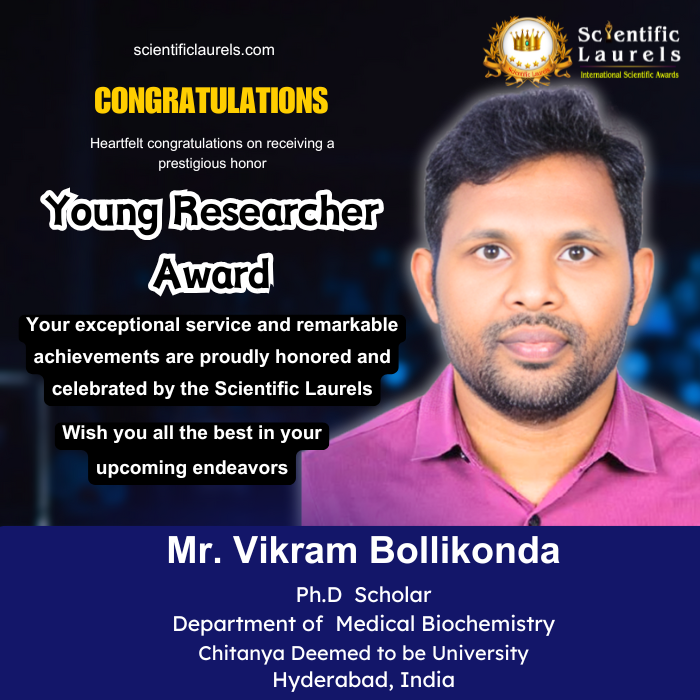 Given his extensive research experience, multiple first-author international publications, and active participation in national and international conferences, Mr. Vikram Bollikonda is highly eligible for the Young Researcher Award in scientific laurels. His contributions demonstrate a consistent commitment to advancing biochemical and clinical research, making him a deserving candidate for recognition.