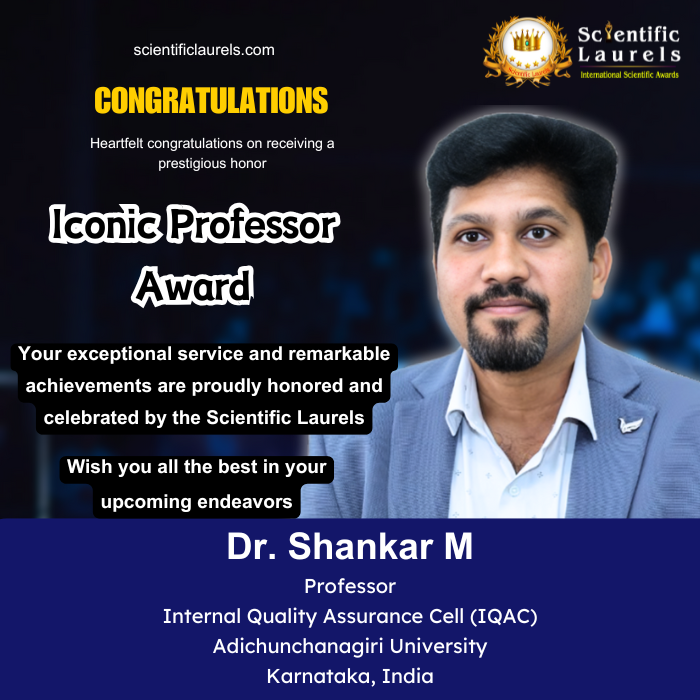 Dr. Shankar M’s exceptional contributions to pharmaceutical education, research, and drug discovery make him highly deserving of the Iconic Professor Award in Scientific Laurels. His impactful research, leadership in academic development, and dedication to advancing pharmaceutical sciences position him as a leading figure in the field.