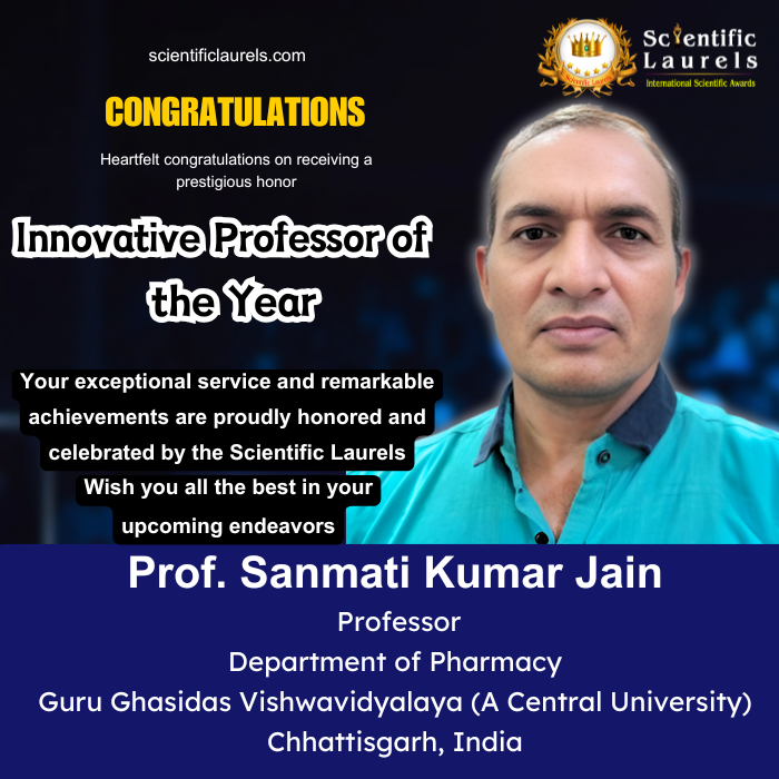 With an exceptional record of over 125 publications, 100+ patents, award-winning research in sustainable drug delivery systems, and groundbreaking innovations in pharmaceutical sciences, Prof. Sanmati Kumar Jain exemplifies the qualities of a forward-thinking academic leader. His outstanding contributions to research, innovation, and teaching excellence make him highly deserving of the Innovative Professor of the Year Award in Scientific Laurels.
