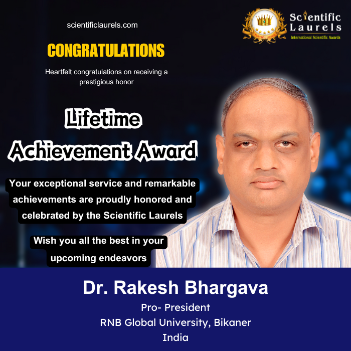 Dr. Rakesh Bhargava’s illustrious career and significant contributions to agricultural science and innovation make him a deserving candidate for the Lifetime Achievement Award in Scientific Laurels. His dedication to research excellence, innovative problem-solving, and academic leadership exemplify the qualities of a true scientific pioneer.