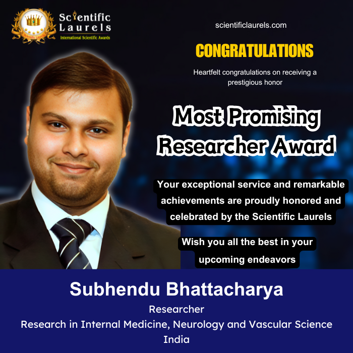 Given his groundbreaking research, significant contributions to global medical science, and numerous professional accolades, Subhendu Bhattacharya is highly deserving of the Most Promising Researcher Award at Scientific Laurels. His dedication to advancing medical innovation aligns with the mission of Scientific Laurels to recognize and honor exceptional researchers worldwide.