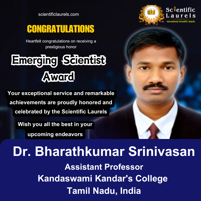 Dr. Bharathkumar Srinivasan demonstrates exceptional promise as an emerging scientist, evidenced by: