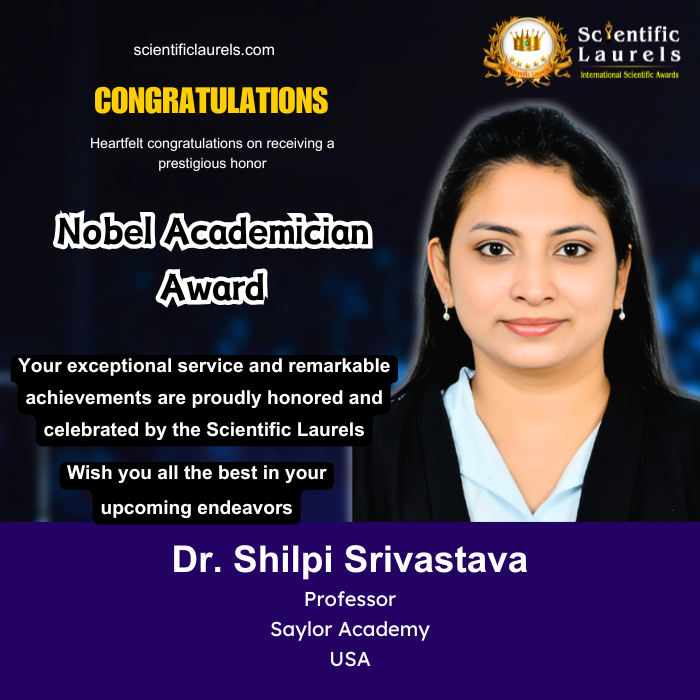 Dr. Shilpi Srivastava is highly eligible for the Nobel Academician Award in recognition of her outstanding academic leadership, exceptional contributions to global education, and her transformative impact in the field of Artificial Intelligence and Natural Language Processing. Her dedication to promoting inclusive, innovative, and accessible education at a global scale sets a remarkable benchmark in 21st-century academia.