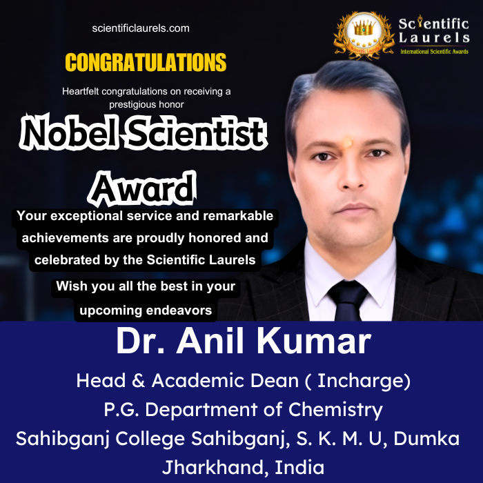 Dr. Anil Kumar demonstrates outstanding qualifications and scientific laurels, making him a strong candidate for the Nobel Scientist Award due to: