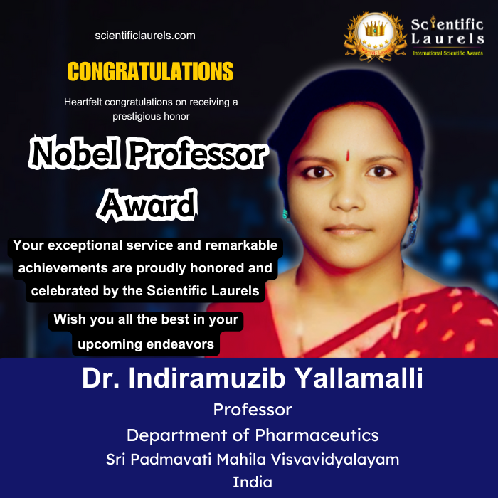 With a consistent record of groundbreaking research, innovative drug delivery system development, and contributions to pharmaceutical education, Dr. Indira Muzib Yallamalli is a prime candidate for the Nobel Professor Award in Scientific Laurels. Her commitment to advancing healthcare solutions, mentoring future scientists, and influencing global research initiatives aligns with the core values of this prestigious recognition.