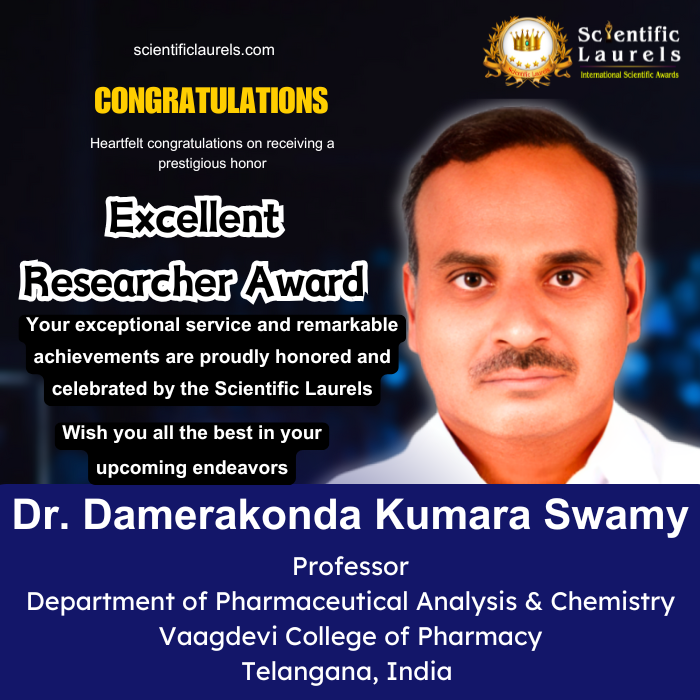 Given his extensive research output, active participation in national and international academic platforms, role as an adjudicator, and continuous contribution to pharmaceutical education, Dr. Damerakonda Kumara Swamy is eminently eligible for the “Excellent Researcher Award” under Scientific Laurels. His dedication to advancing pharmaceutical sciences, coupled with his consistent publication record and professional engagement, exemplifies excellence in research and academia.