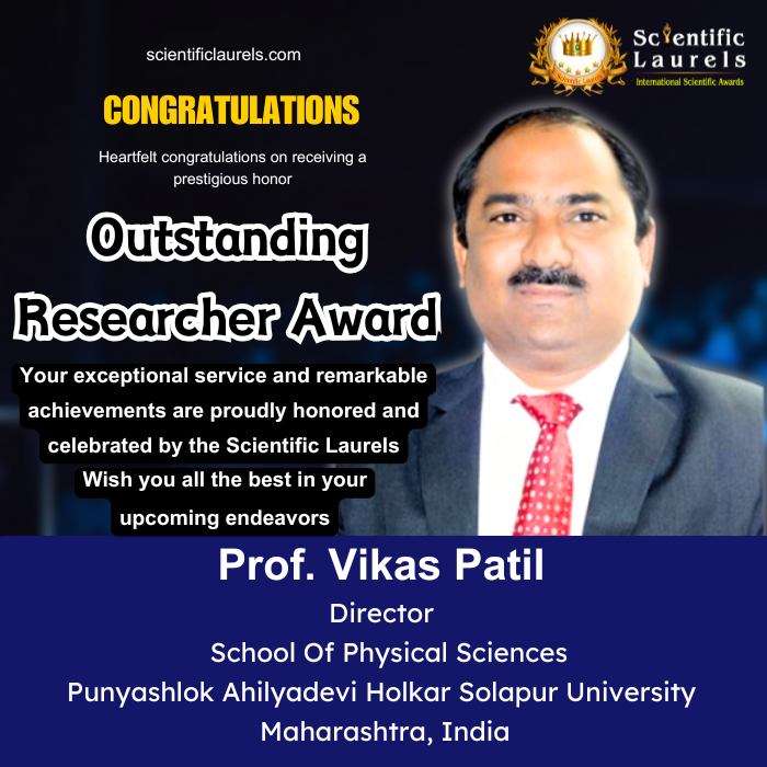 Prof. Vikas Patil’s outstanding achievements in research productivity, innovation, global recognition, and mentorship make him a strong candidate for the Outstanding Researcher Award. His vast publication record, high citation impact, patents, prestigious fellowships, and international collaborations demonstrate his significant contributions to advancing science and technology.