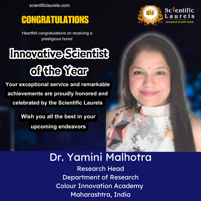Dr. Yamini Malhotra is eminently eligible for the “Innovative Scientist of the Year” recognition for her groundbreaking interdisciplinary contributions that blend planetary geology, medicinal geology, geo-oncology, geospatial sciences, and astrobiological research. Her pioneering studies—from Martian and lunar geological analysis to the therapeutic potential of geological and botanical agents—demonstrate a rare scientific vision that bridges Earth and space sciences. With more than a dozen impactful research papers, over twenty authored books, and a series of national and international awards—including Best Researcher in Planetary Geology, Women Icon Asia Technology Award, and multiple Author of the Year honours—Dr. Malhotra has consistently advanced novel scientific ideas and created new knowledge streams. Her leadership in conferences, workshops, and educational initiatives further underscores her role as a forward-thinking innovator, making her a distinguished and deserving candidate for the Innovative Scientist of the Year in Scientific Laurels.
