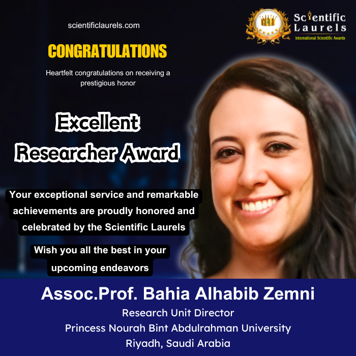 Assoc. Prof. Bahia Alhabib Zemni’s extensive contributions to linguistics, translation studies, and cultural research make her highly deserving of the Excellent Researcher Award in Scientific Laurels. Her interdisciplinary research, global collaborations, and impact in language sciences and translation position her as a leading scholar in her field.