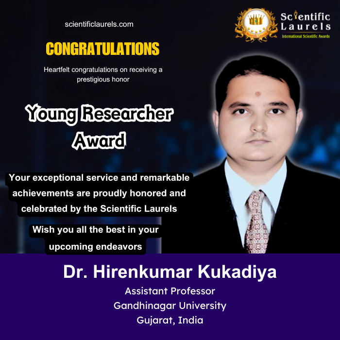 In recognition of his innovative research contributions, active participation in reputed conferences, and impactful publications in emerging domains of AI and deep learning, Dr. Hirenkumar Kukadiya is highly eligible for the “Young Researcher Award” under Scientific Laurels.