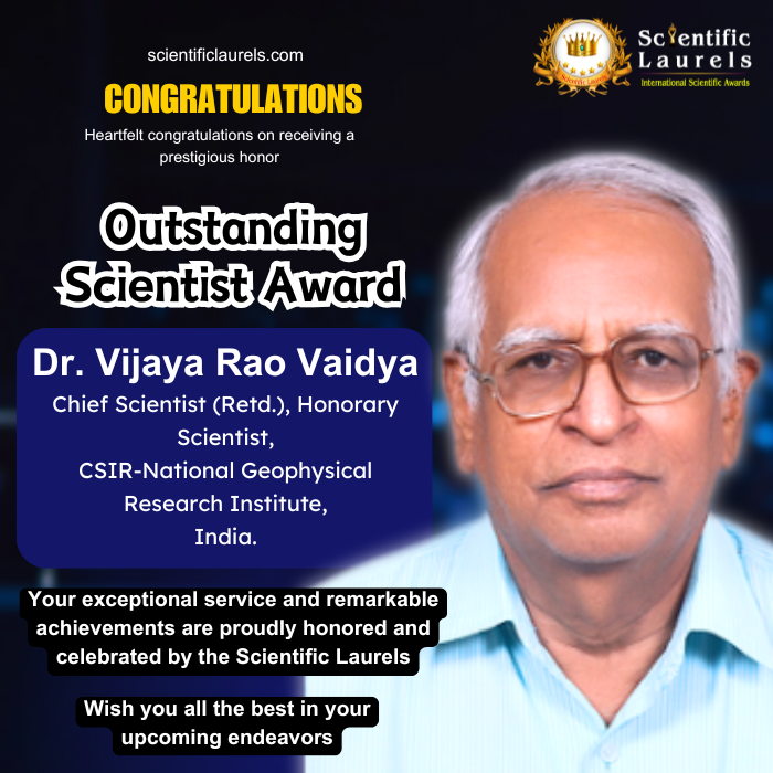 Dr. Vijaya Rao Vaidya is an exceptional scientist whose pioneering research has expanded the boundaries of geophysics. His dedication to understanding the Earth’s crust, seismic studies, and tectonic processes has made him a prominent figure in the scientific community. His extraordinary contributions to the field make him a deserving candidate for the Outstanding Scientist Award from Scientific Laurels.