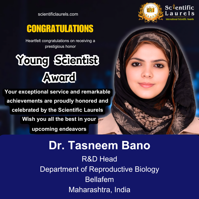 Dr. Tasneem Bano is highly eligible for the Young Scientist Award in Scientific Laurels due to her outstanding contributions to interdisciplinary biomedical research, particularly in reproductive biology, molecular studies, and computational drug design. She has demonstrated a strong and consistent research profile with multiple recent publications (2024–2026) in reputed peer-reviewed journals, addressing critical areas such as assisted reproductive technologies (ART), implantation physiology, and therapeutic interventions. In her current role as Medical Advisor & Head – Reproductive Biology and Molecular Studies at BellaFem, she actively leads innovative research and translational applications, bridging clinical practice with advanced scientific methodologies. Her work in emerging domains such as nanoparticle-based prevention, genomics, and vaccine design further highlights her scientific versatility and impact. Additionally, her recognition through the Certificate of Excellence in Reviewing reflects her commitment to academic quality and peer-review integrity. Collectively, her research achievements, leadership, and contributions to advancing biomedical science make her a deserving candidate for the Young Scientist Award.