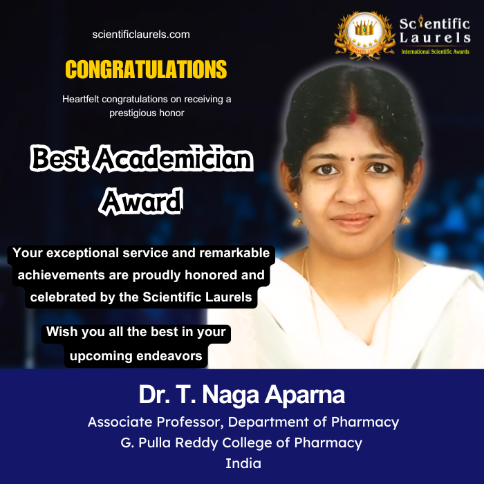 Dr. T. Naga Aparna’s extensive academic record, impactful research, innovative teaching methodologies, and scholarly publications establish her as an exemplary educator and researcher in Pharmaceutical Sciences.