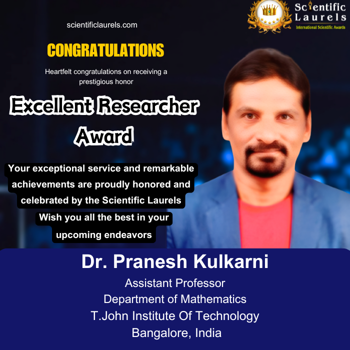 Dr. Pranesh Kulkarni is currently serving as an Assistant Professor at T. John Institute of Technology, Bangalore, a position he has held since 2019. With a strong foundation in his field, he has consistently contributed to teaching, research, and academic mentoring, shaping the next generation of scientists and engineers.