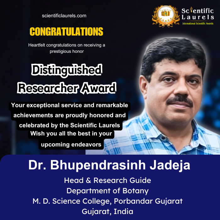 With an exceptional academic and research career spanning over 35 years, an extensive publication record, multiple patents, and international recognitions, Dr. Bhupendrasinh Jadeja exemplifies excellence in scientific research and leadership.