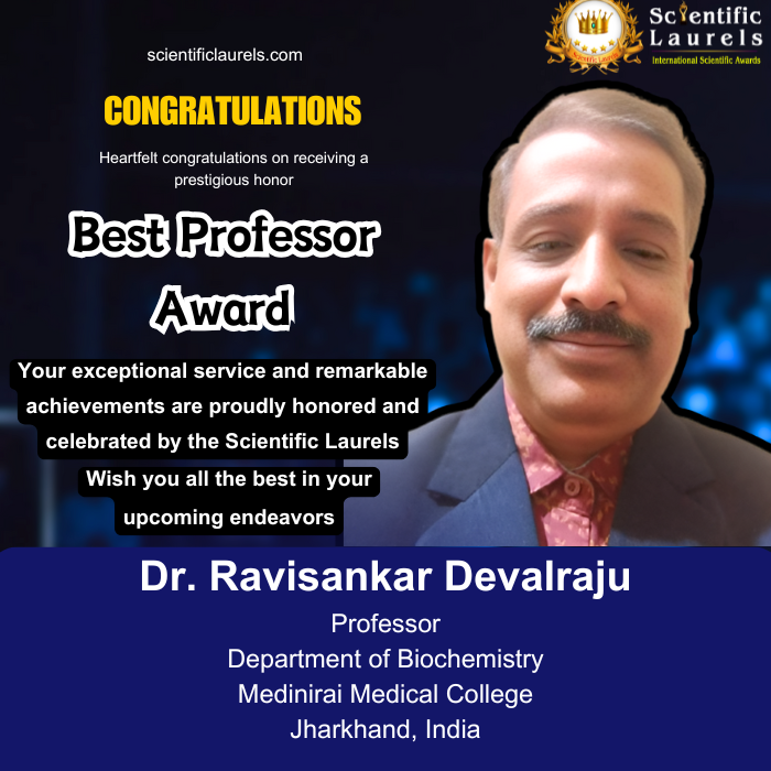 Dr. Ravisankar Devalraju is highly eligible for the Best Professor Award in Scientific Laurels due to his sustained excellence in teaching, research, and academic leadership. His profile demonstrates a rare combination of impactful research funding, a strong publication record across basic and clinical sciences, recognized teaching excellence, and continuous professional development in medical education. His contributions to community-based research, interdisciplinary science, and the mentoring of medical students and professionals position him as an exemplary academician deserving of national-level recognition as a Best Professor.
