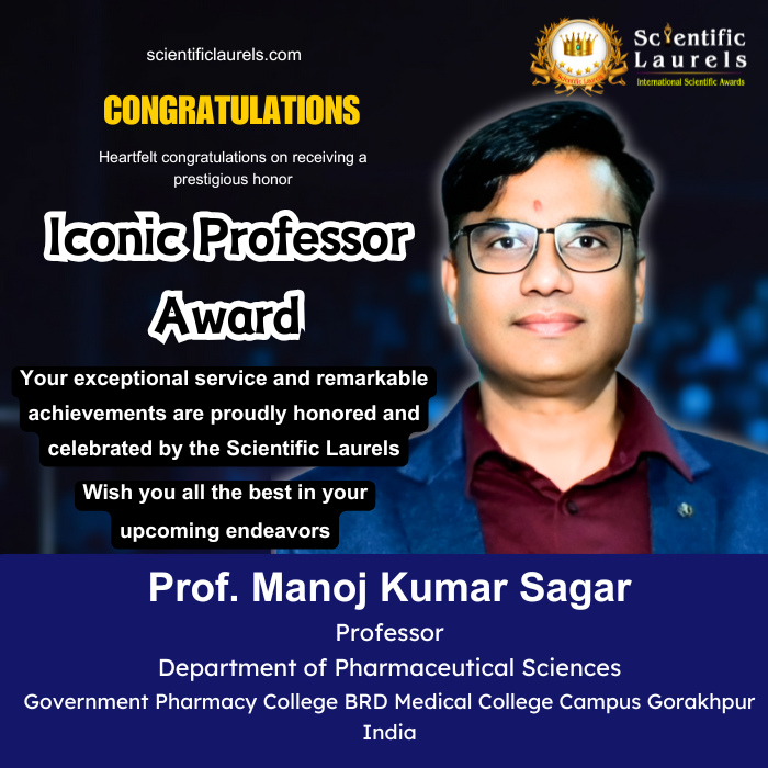 Prof. Manoj Kumar Sagar’s exemplary academic leadership, extensive research contributions, mentorship of students, and consistent involvement in advancing pharmaceutical sciences make him a distinguished candidate for the Iconic Professor Award. His scientific laurels, recognized awards, and commitment to education underscore his eligibility and dedication to fostering excellence in pharmacy education and research.