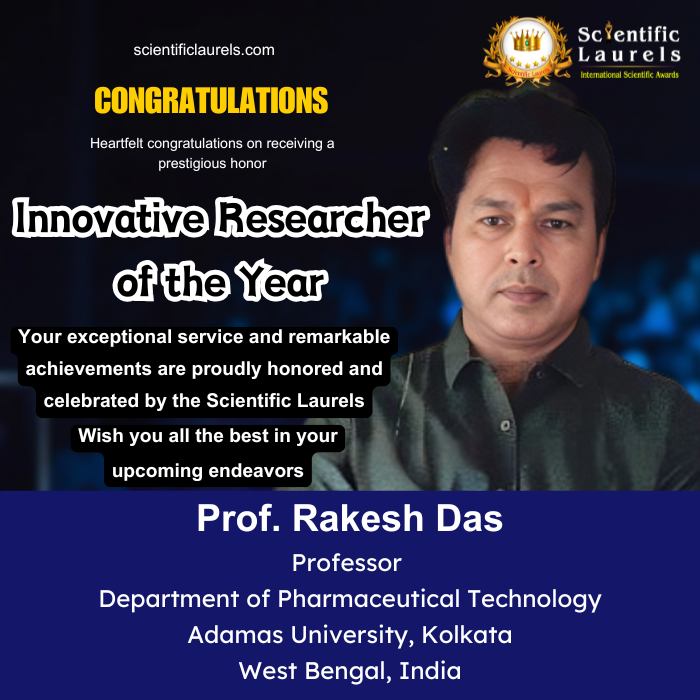 With a prolific record of research patents, impactful international publications, and interdisciplinary innovations in pharmaceutical sciences and healthcare technology, Prof. Rakesh Das exemplifies scientific creativity and translational excellence.