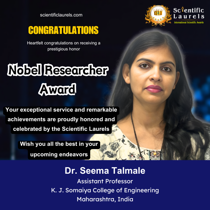 In recognition of her groundbreaking research, academic excellence, and contributions to deep-space communication and error-correcting codes, Dr. Seema Talmale is eligible for the Nobel Researcher Award by Scientific Laurels. Her innovative research, patent success, and scholarly contributions make her a distinguished researcher in her field.